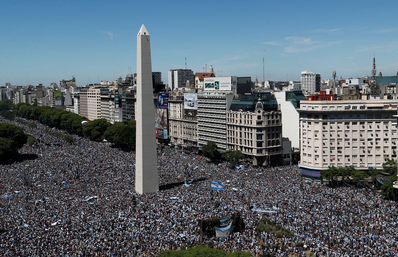 大批球迷在首都南部的國際機場外徹夜守候,凌晨2:30,這支被稱為"La Selección"的球隊從卡塔爾抵達時,即便深夜時分,人羣仍蜂擁圍住車隊——載着球隊和全球最重要足球賽事金盃的大巴駛向機場附近的住宿地。