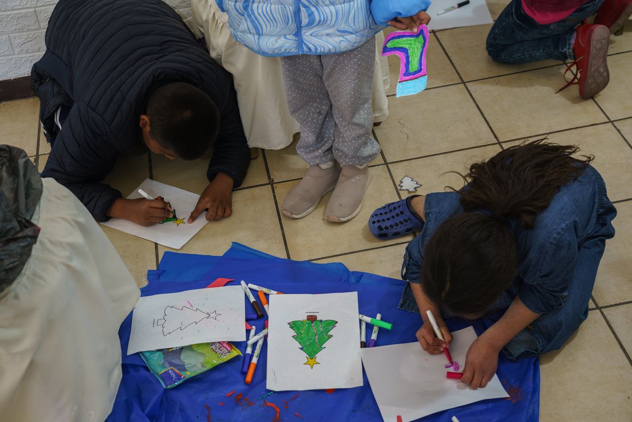 移民兒童在華雷斯城庇護所給聖誕樹塗色。尼加拉瓜移民表示擔心政策可能對他們不利。目前由於丹尼爾·奧爾特加總統政府拒絕接收遣返人員——其威權政權正在加強政治鎮壓,尼加拉瓜人暫時不會被驅逐。