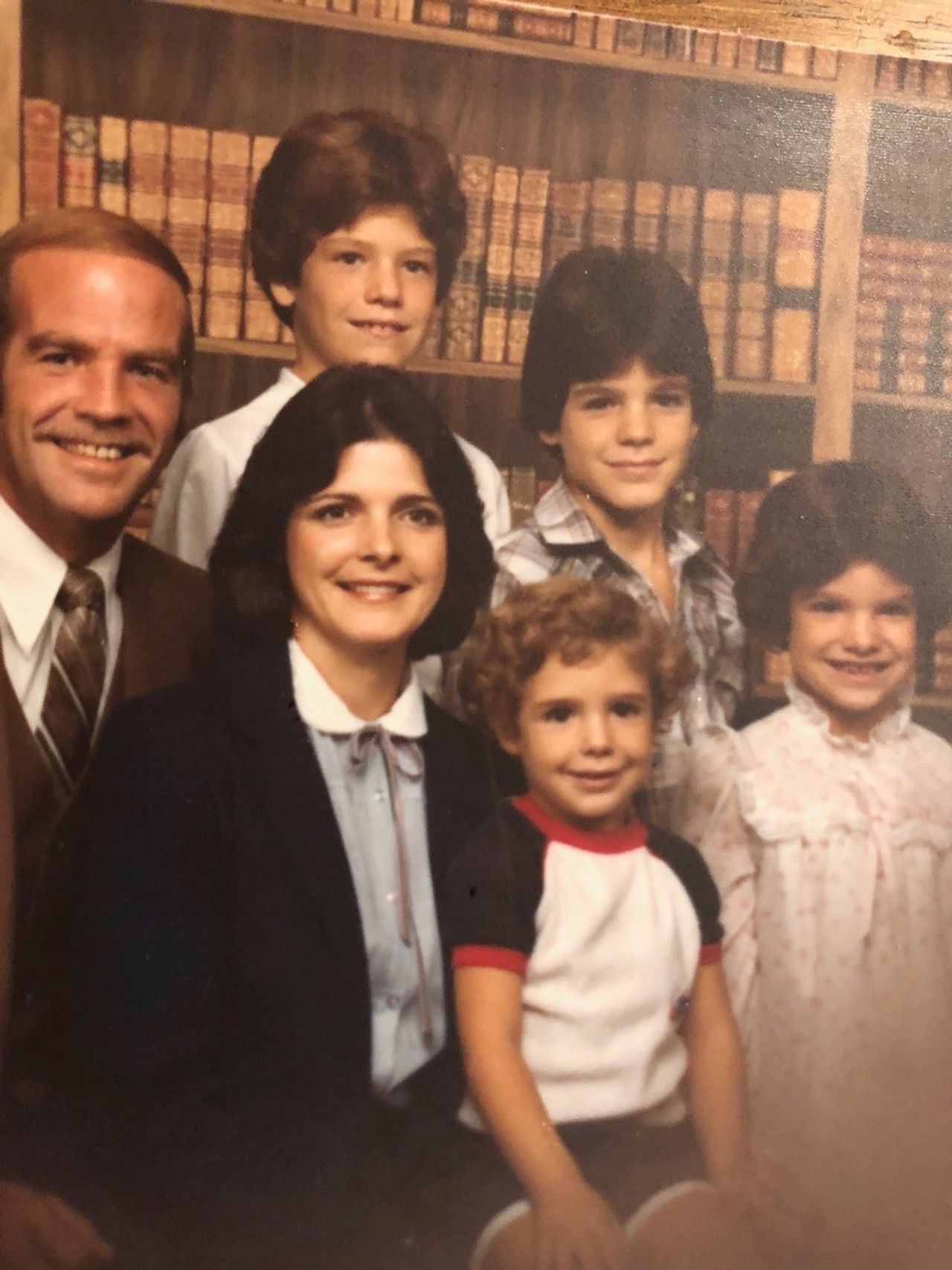 1979年左右在亞特蘭大,穿格子襯衫的邁克爾·凱利與父母老邁克爾和莫琳、姐姐香農(上)和凱西以及弟弟安德魯的合影。圖片來源:邁克爾·凱利(家庭照片)三歲時我們搬到了德克薩斯州休斯頓郊區。七年後,就在我上五年級前,我們又回到亞特蘭大,住進一棟漂亮的兩層磚房。那時我已有了兩個妹妹香農、凱西和弟弟安德魯。