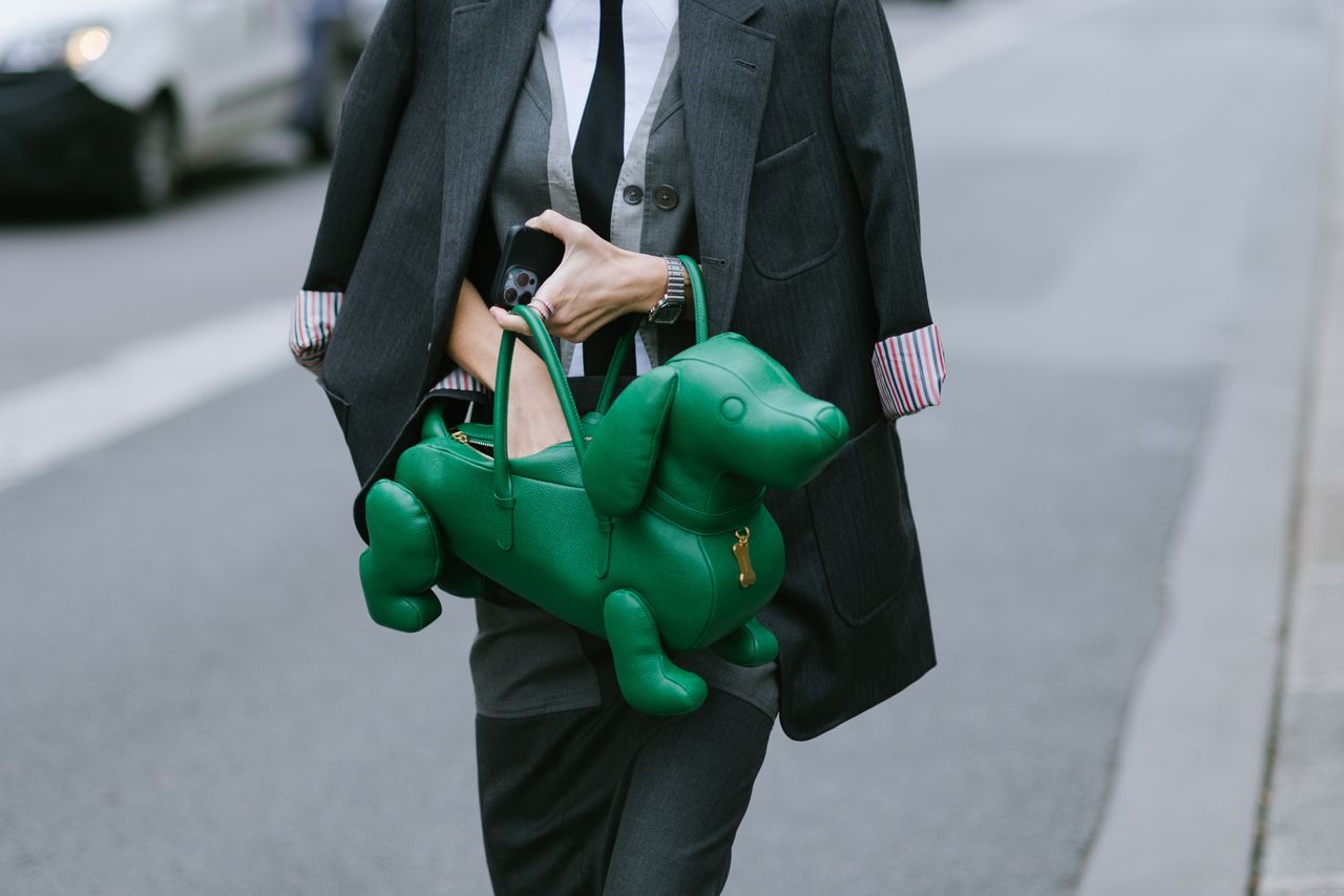 湯姆·布朗(Tom Browne)售價3000美元的臘腸犬造型手袋,是時尚界奇怪一年的一個縮影。圖片來源:Vanni Bassetti/Getty Images在時尚界,這是油漆罐、鴿子和薯片包裝袋形狀手袋盛行的一年。
