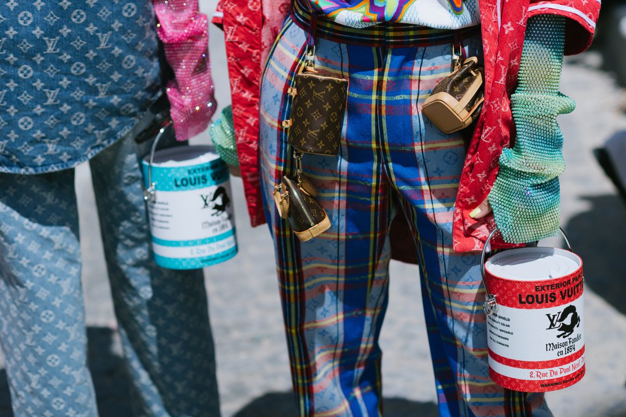 6月,路易威登在其男裝秀上展示了油漆罐造型的手袋。圖片來源:Vanni Bassetti/Getty Images這種吸引眼球的手法今年已滲透至奢侈時尚界,催生了諸如JW Anderson設計的曼哈頓常見鴿子造型手包(890美元)、Diesel推出的比腳踝護具寬不了多少的1073美元超短裙,以及巴黎世家故意做舊如從垃圾堆裏翻出的1850美元運動鞋等單品。