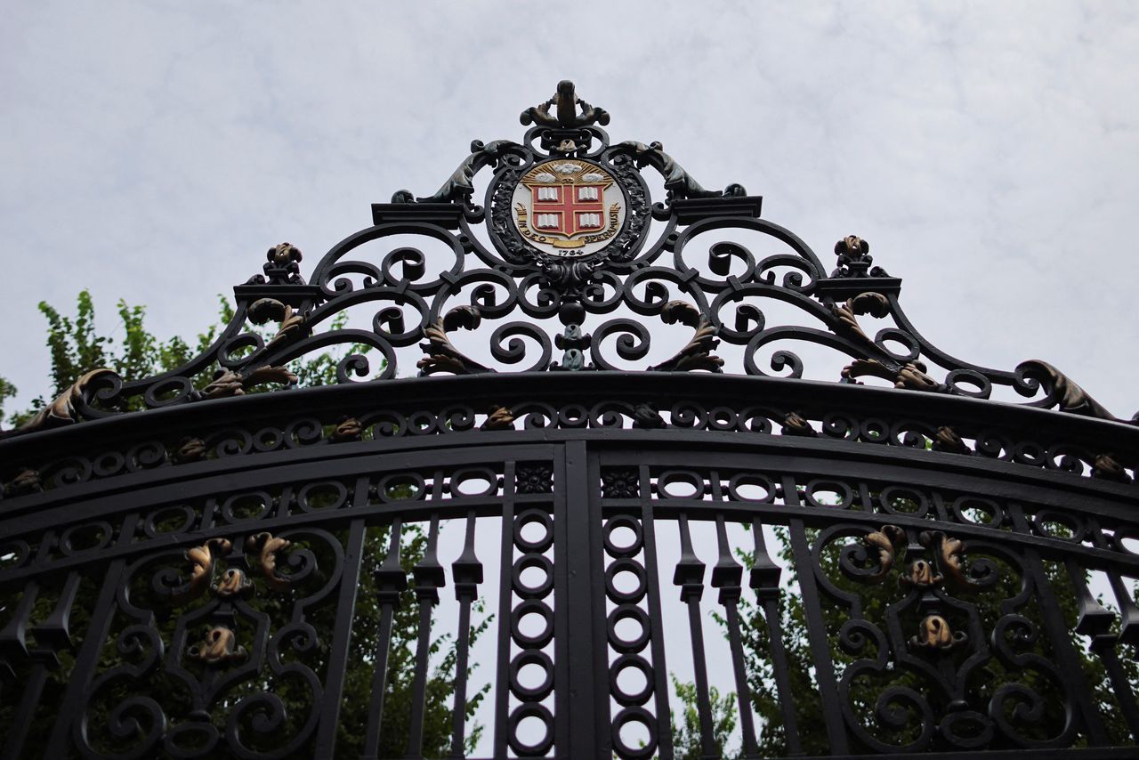 布朗大學的校徽位於羅德島州普羅維登斯主校區邊緣的範威克爾大門頂部,8月16日。照片:BRIAN SNYDER/路透社刊登於2022年12月22日印刷版,標題為《布朗大學歧視南亞人》。