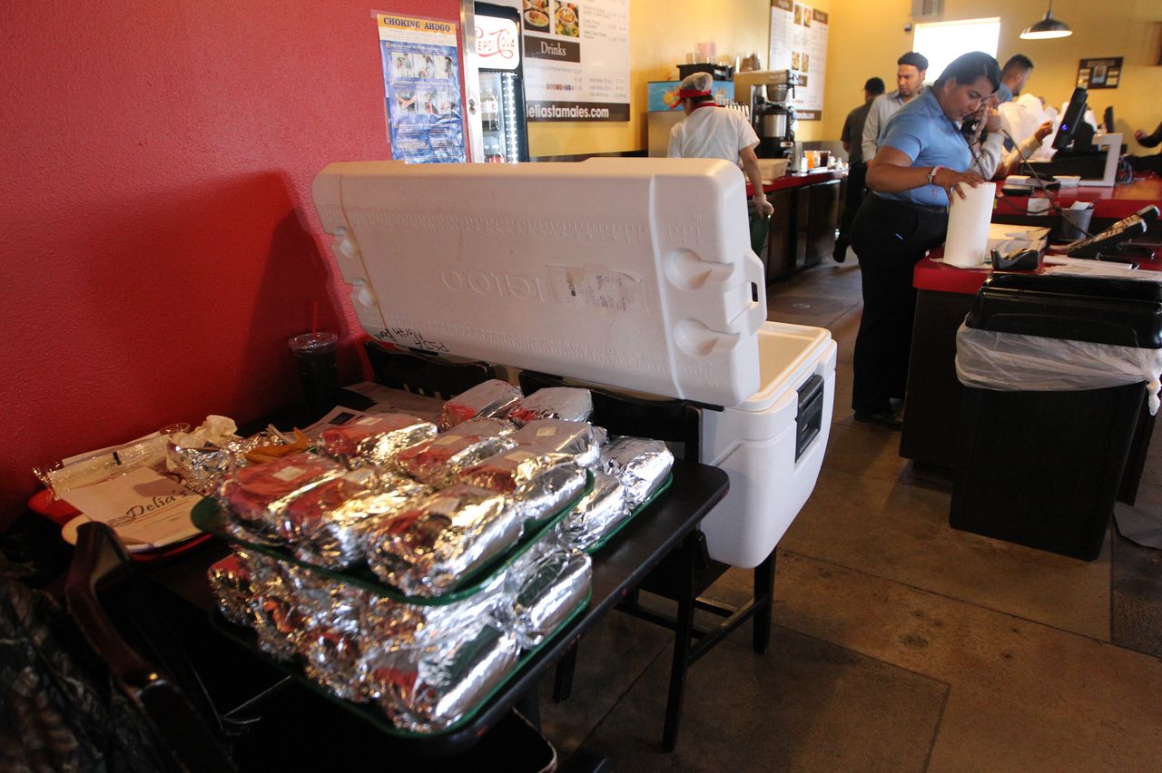 Delia’s餐廳的玉米粉蒸肉正被裝入冷藏箱。總部位於休斯頓的Texas Tamale公司在Kroger、Wegmans、Costco等全國連鎖店銷售不含豬油的玉米粉蒸肉。公司總裁路易斯·麥克恩尼表示,從感恩節到次年一月期間,每週發貨量達100萬至200萬份。十年前公司95%的業務在德州,如今這一比例已降至35%。