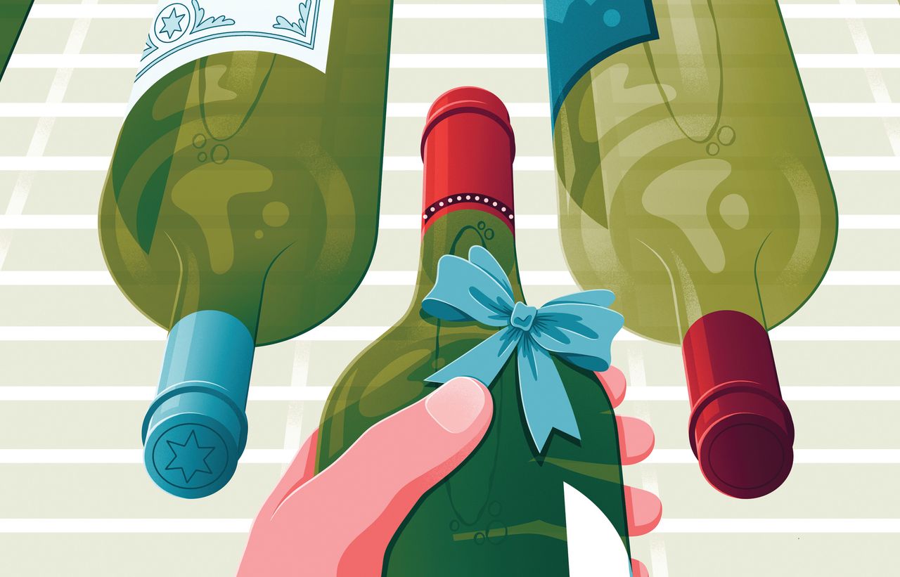 全情投入 最好的葡萄酒禮物能體現出你認真考慮了收禮者的喜好與個人風格。插圖:雅各布·斯特德又到了饋贈的季節,愛酒人士都明白這意味着什麼:你很可能要送出一瓶酒,也會收到一瓶酒。