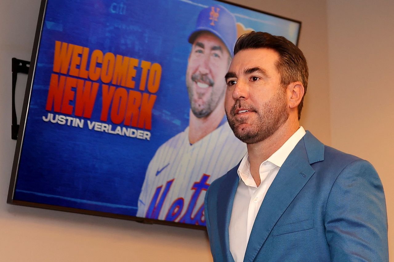 大都會隊投手賈斯汀·維蘭德在花旗球場出席加盟新聞發佈會。圖片來源:布拉德·彭納/今日美國體育人們很容易想象穿着浴袍的科雷亞在大都會隊內野漫步的暮年景象。但正如科恩的熱情所示,這些簽約關乎當下。大都會隊正為贏得2023年冠軍而組建陣容,將年薪4300萬美元的賈斯汀·維蘭德與同薪的馬克斯·舍澤爾收入麾下,更不用説與外野手布蘭登·尼莫和日本球員千賀滉大簽訂的新合約。
