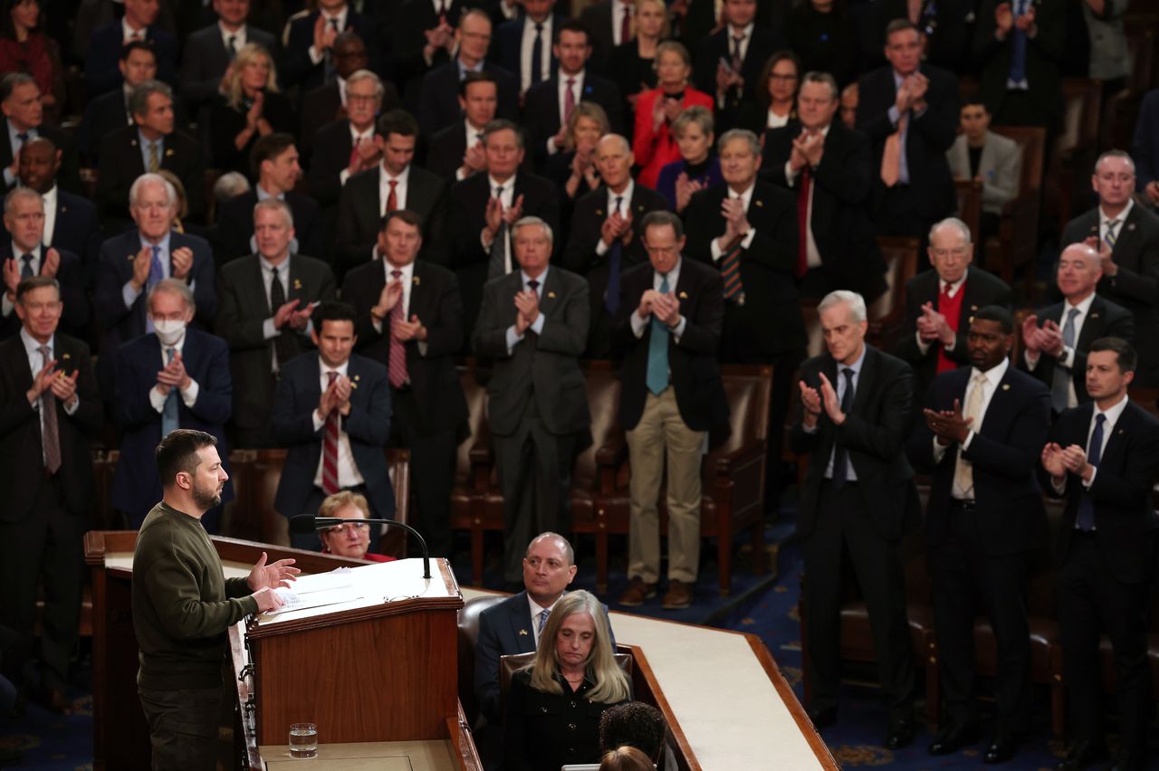 眾議院少數黨領袖凱文·麥卡錫(加州共和黨人)作為共和黨眾議長首選人選,正試圖爭取對持續援助持懷疑態度的保守派支持。澤連斯基演講後,麥卡錫稱這是"精彩演講",並補充説:“我支持烏克蘭,但從不支持空白支票。”