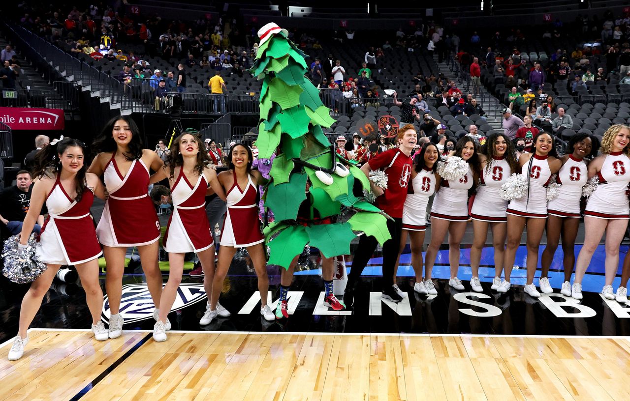 (從左至右)斯坦福大學啦啦隊、吉祥物斯坦福樹和啦啦隊員在Pac-12聯盟籃球錦標賽上表演圖片來源:Ethan Miller/Getty Images據《斯坦福日報》報道,今年秋季開學前四周,註冊派對的數量從2019年同期的158場減少到45場。