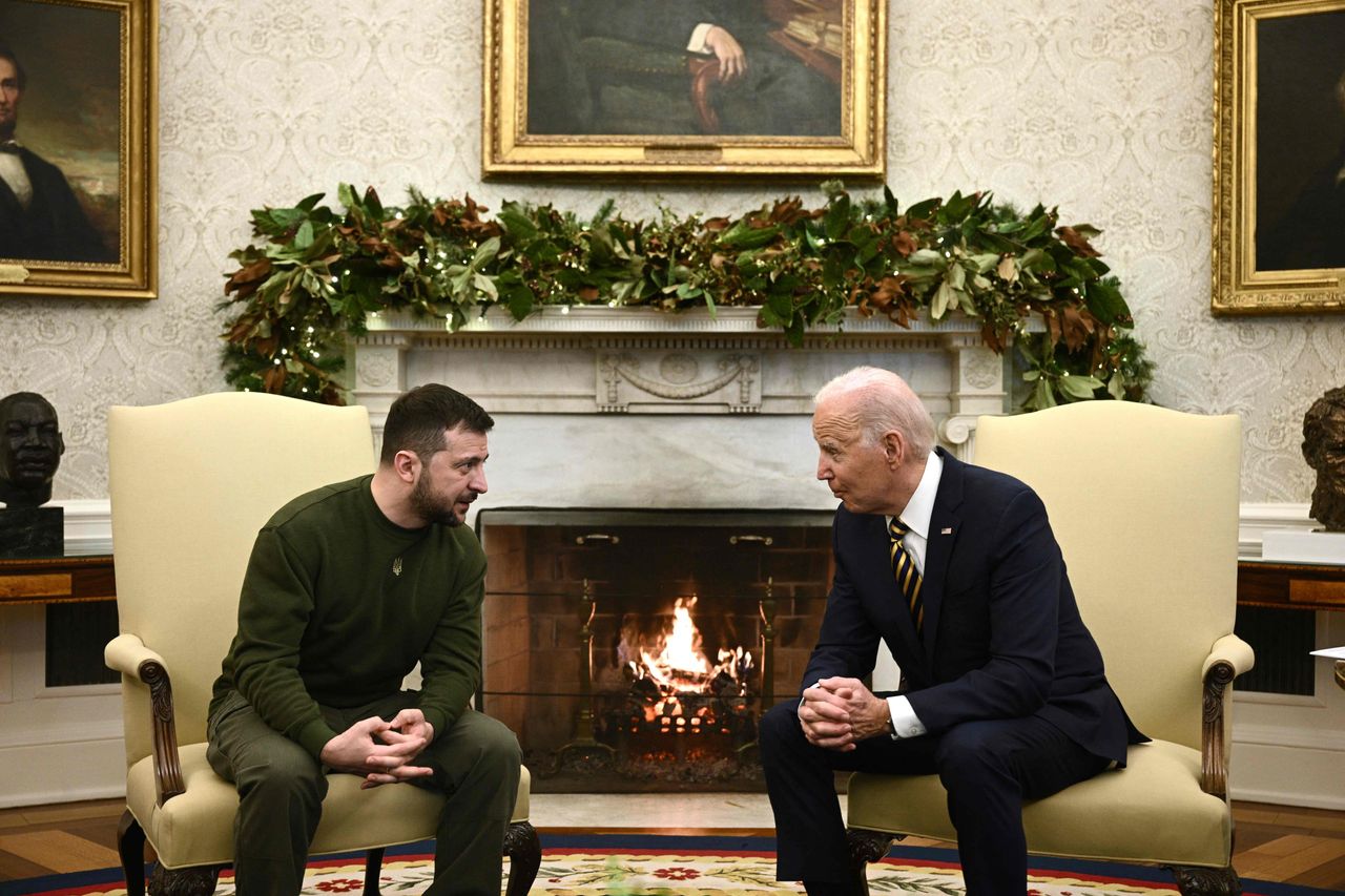 澤連斯基與拜登週三下午在橢圓形辦公室會晤。圖片來源:布倫丹·斯米亞洛夫斯基/法新社/蓋蒂圖片社澤連斯基此行被比作温斯頓·丘吉爾的歷史性戰時訪問。這位英國首相曾於1941年12月26日二戰期間在參議院發表演講。