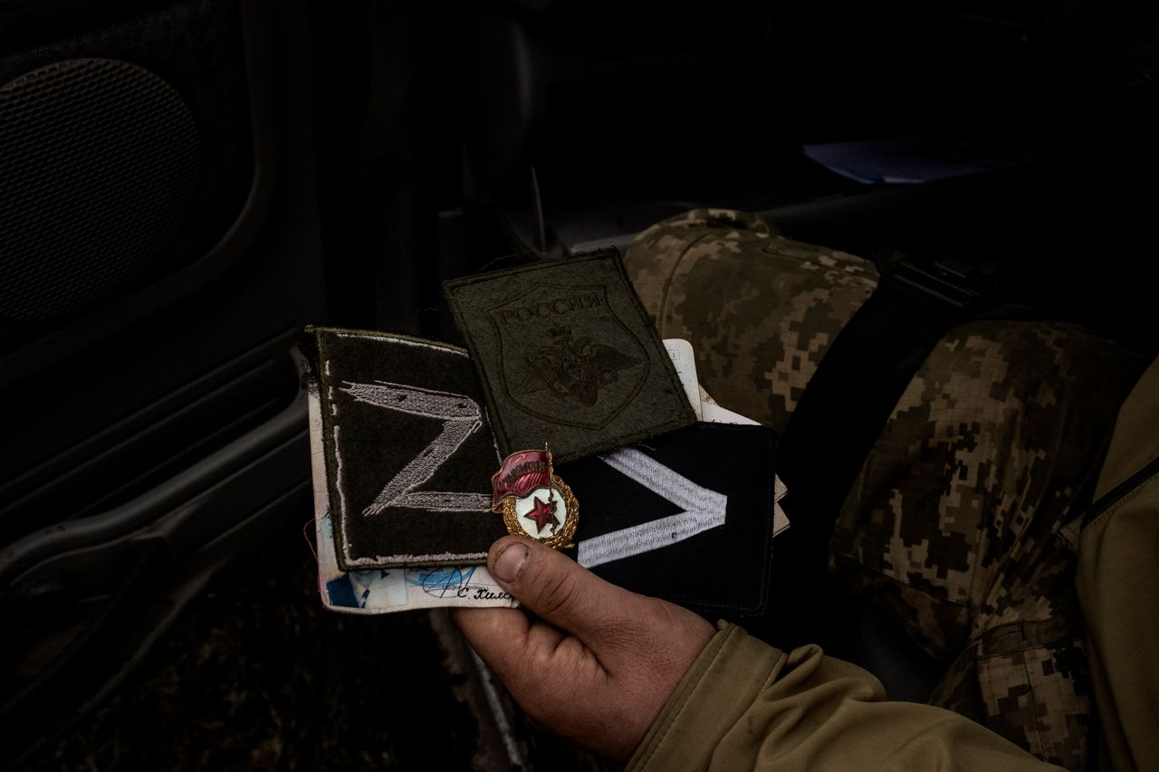 一名烏克蘭士兵展示從烏克蘭東部一名士兵身上取下的俄羅斯徽章和獎章。“他們在動員初期為了儘快讓人員加入部隊而偷工減料,有些情況下只經過幾天訓練就把人送上前線,”美國無黨派智庫蘭德公司高級政策研究員達拉·馬西科特説。