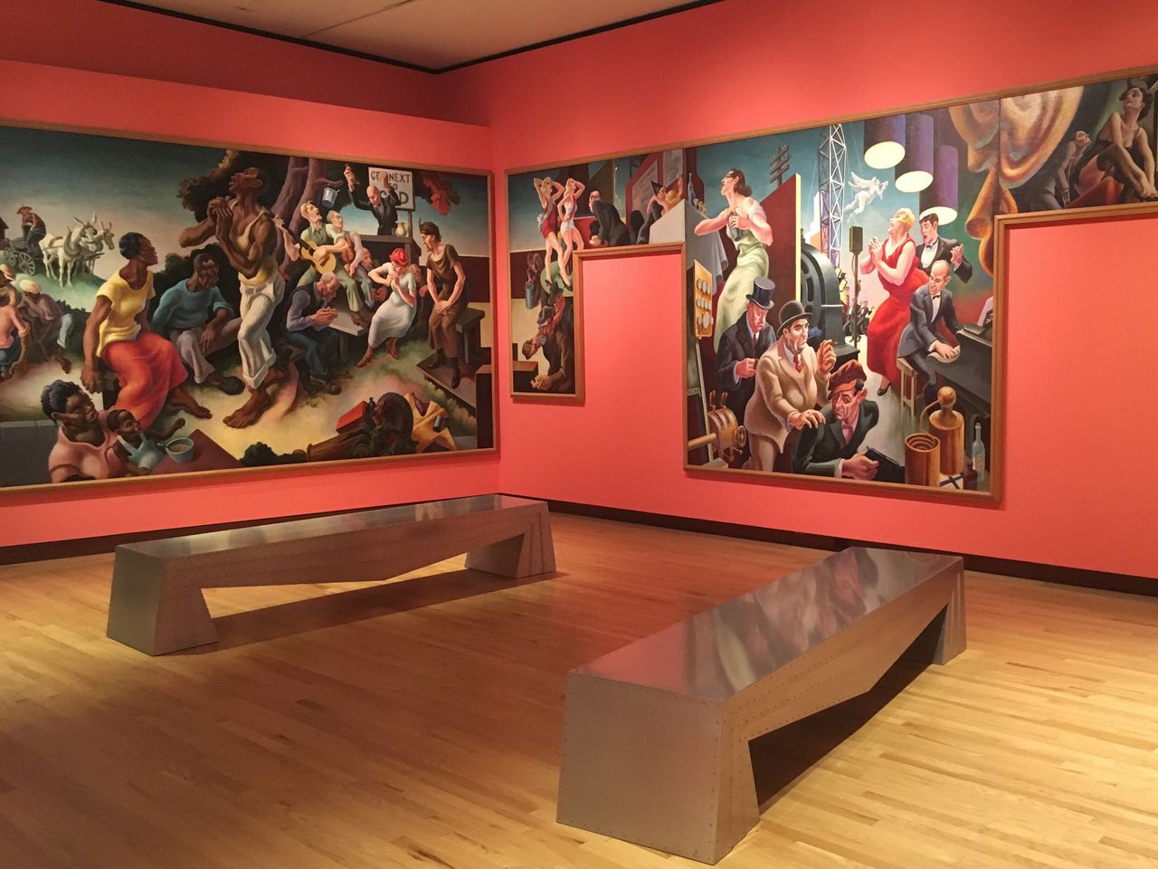 圖片來源:新不列顛美國藝術博物館#### 托馬斯·哈特·本頓《美國生活藝術》(1932),新不列顛美國藝術博物館藏