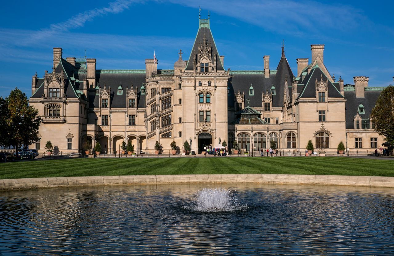 這座擁有250個房間、裝飾着石像鬼的城堡,以法國文藝復興風格為喬治·華盛頓·範德比爾特(1862-1914年)設計,在19世紀90年代艱苦的北卡羅來納州山區顯得超凡脱俗。作為傳奇海軍准將的書呆子孫子,喬治·範德比爾特第一次與母親來到北卡羅來納州阿什維爾呼吸新鮮空氣時,年僅20多歲。在城市南部的一次騎馬旅行中,他在距離法國布羅德河和斯旺納諾阿河交匯處不遠的山坡上停了下來。他立刻被西面和南面藍嶺山脈的廣闊景色所吸引,於是指示一位代理人開始購買土地,然後聘請了亨特和另一位處於職業生涯最後階段的傑出美國設計師——景觀建築師弗雷德里克·勞·奧姆斯特德(1822-1903年)——來打造他的莊園。