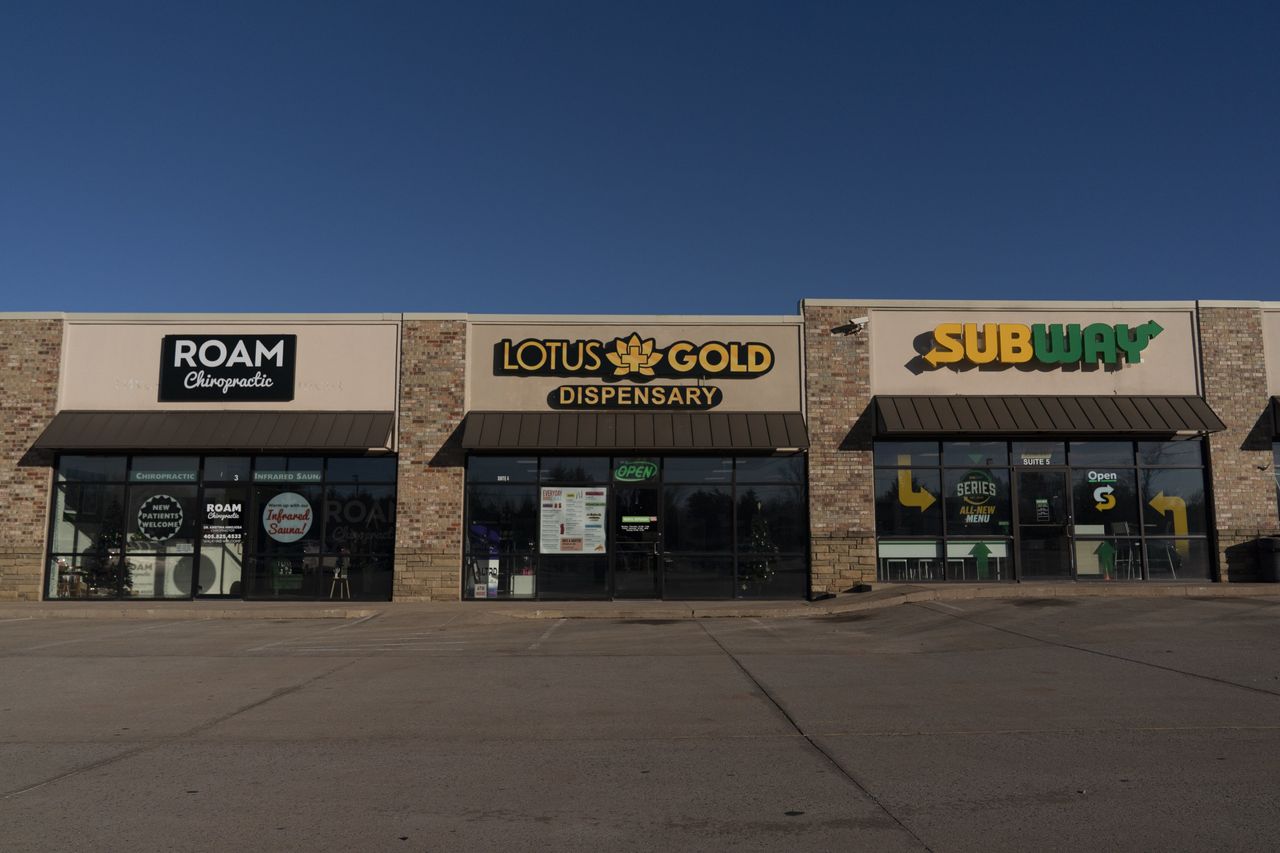 俄克拉荷馬州洛根縣一家購物中心內的大麻專賣店圖片來源:Nick Oxford/華爾街日報在俄克拉荷馬市郊區的埃德蒙市,兩家大麻商店與輪胎店、加油站和合作社共同坐落在一個繁忙的十字路口。
