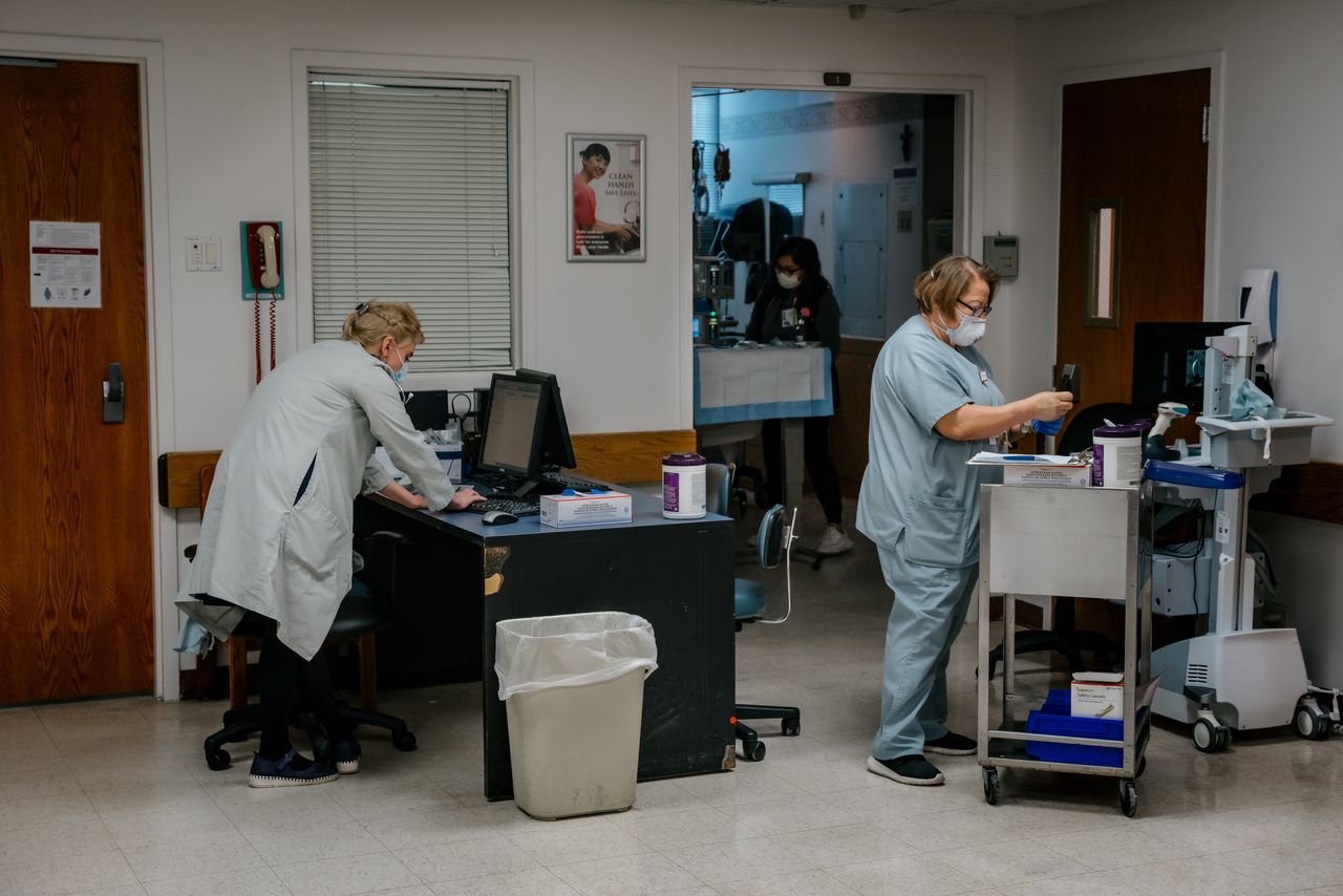 護士和醫生在聖安東尼醫院重症監護室病房外工作。2016年,Ascension宣佈了一項交易,將華盛頓和愛達荷州的醫院出售給由資產管理公司阿波羅全球管理公司的私募股權基金支持的醫院連鎖機構。