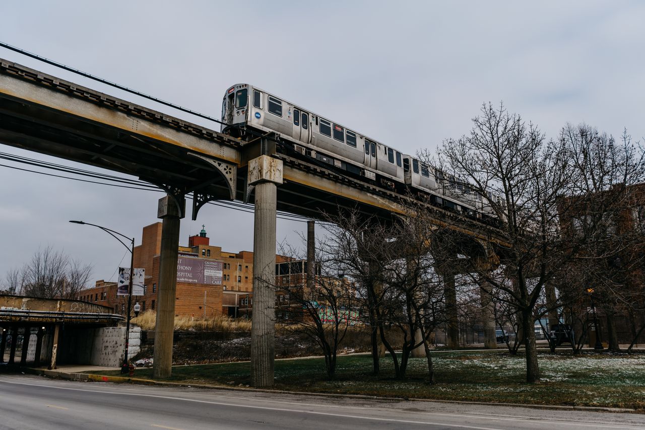一條高架列車線路經過芝加哥的聖安東尼醫院。