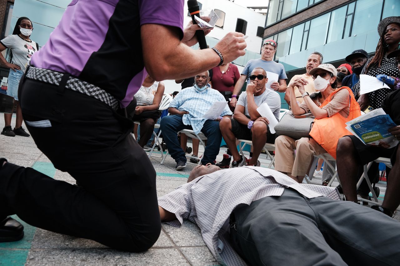 布魯克林社區康復中心的工作人員正在演示如何使用藥物過量逆轉劑。圖片來源:Spencer Platt/Getty Images一家制藥非營利組織獲得美國食品藥品監督管理局(FDA)的優先審查資格,將生產一種無需處方的廉價藥物過量逆轉劑。