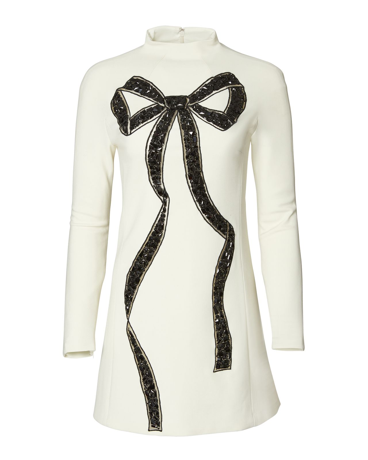 穿上這件象牙色羊毛高領迷你裙,收禮者將成為最快樂的主人——也是永遠不會與色彩斑斕的賓客格格不入的那一位。卡羅琳娜·埃萊拉 飾蝴蝶結細節長袖高領迷你裙,售價2,990美元。
