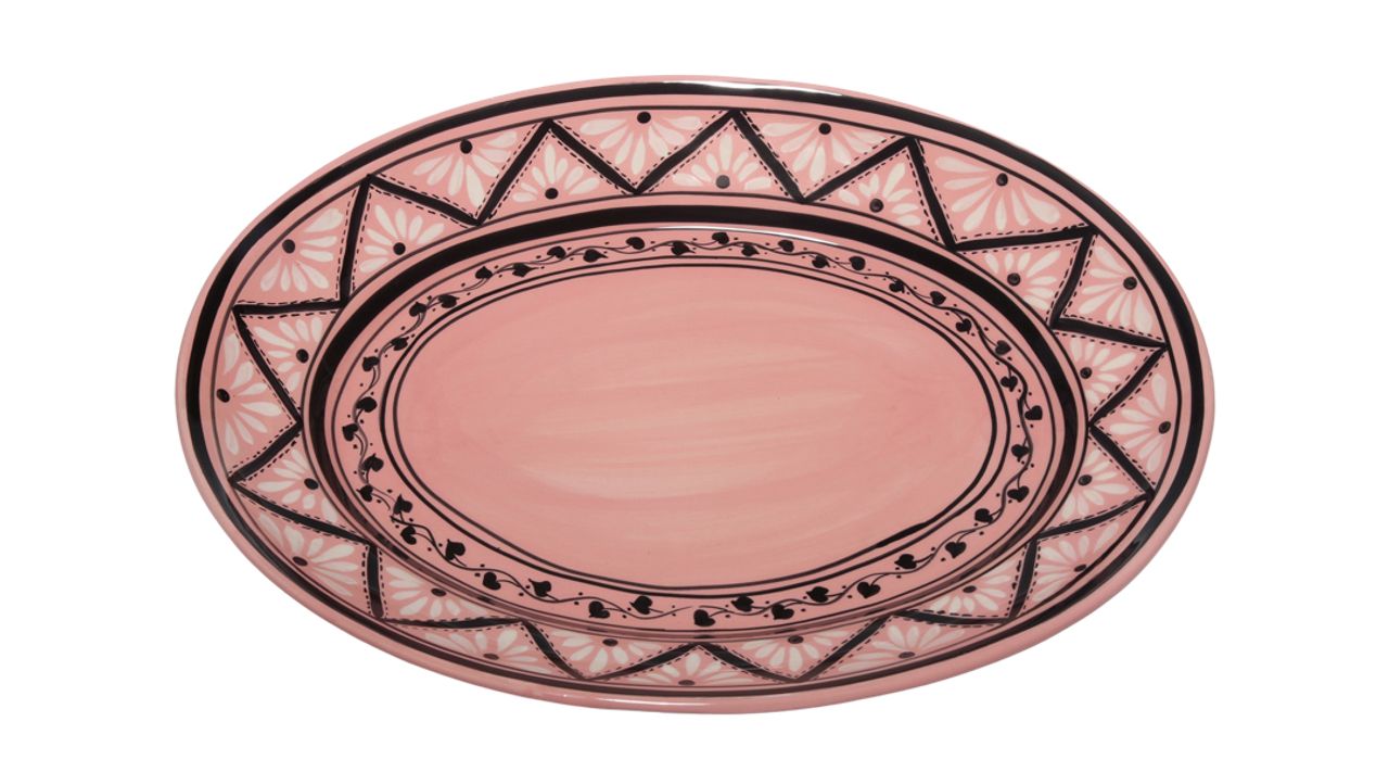 該送什麼給見多識廣的主人?一件手工製品,比如這款由葡萄牙工匠與Carolina Irving & Daughters合作製作並繪製的陶瓷大盤。盛放魚類極佳——搭配酥皮葡式蛋撻更妙。葡式蛋撻。Carolina Irving & Daughters出品Gigi粉紅橢圓盤,295美元。