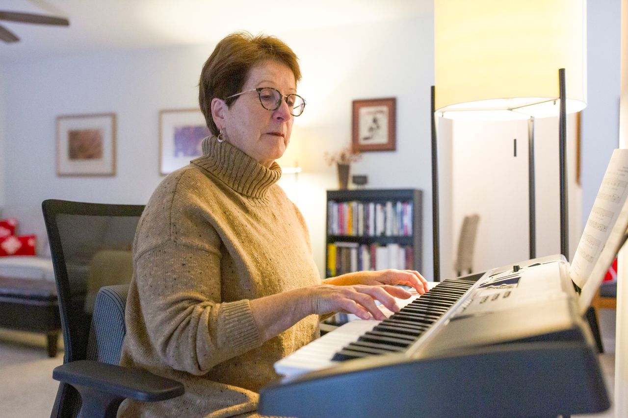 戈雷斯女士小時候彈過鋼琴,現在又開始在鍵盤上練習。攝影:瑪德琳·格雷為《華爾街日報》拍攝她在健康儲蓄賬户中存有約10萬美元,每月從收入中支付約355美元的補充保險費。她可能再過五年左右開始動用這筆健康儲蓄賬户的錢,儘管她理想中希望這筆錢用於長期護理。