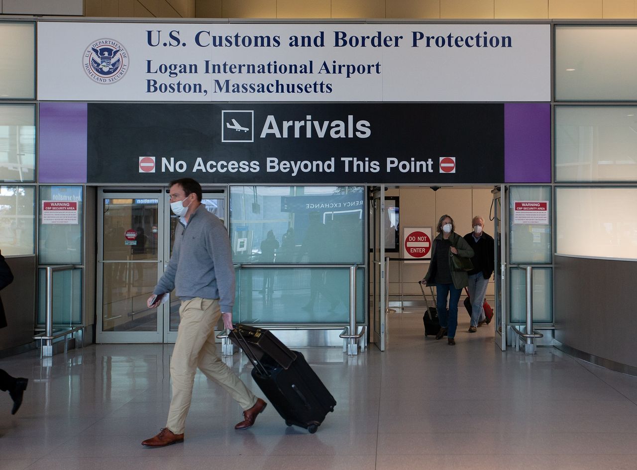 2021年11月8日,旅客通過美國海關與邊境保護局通道抵達波士頓洛根國際機場。照片:cj gunther/Shutterstock刊登於2022年12月29日印刷版,標題為《保護拜登免受中國新冠影響》。
