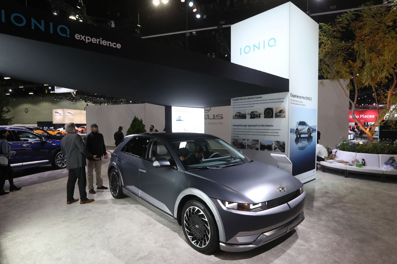 洛杉磯展出的現代Ioniq 5。照片:David Swanson/Shutterstock包括Rivian、Lucid集團和Fisker公司在內的新興全電動品牌,正利用電動車買家願意放棄以往汽車品牌或車型、嘗試新事物的心理進行市場佈局。