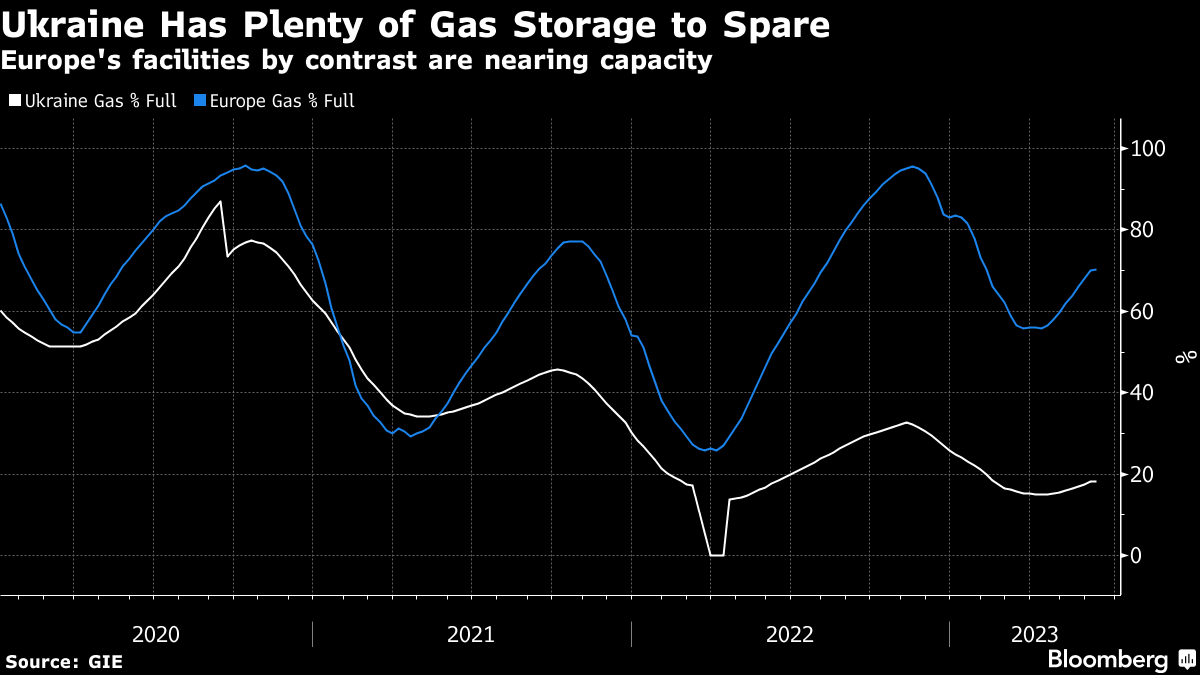 歐洲官員現在正在考慮是否支持與烏克蘭各地分佈的Bilche-Volytsko-Uherske等設施的聯繫 —— 烏克蘭擁有歐洲最大的地下洞穴網絡,可以在冬季需求和價格飆升時儲存天然氣。由於歐盟的儲存設施已接近容量上限 —— 目前已超過70%的容量 —— 在烏克蘭儲存燃料可以避免未來幾個月出現過剩。