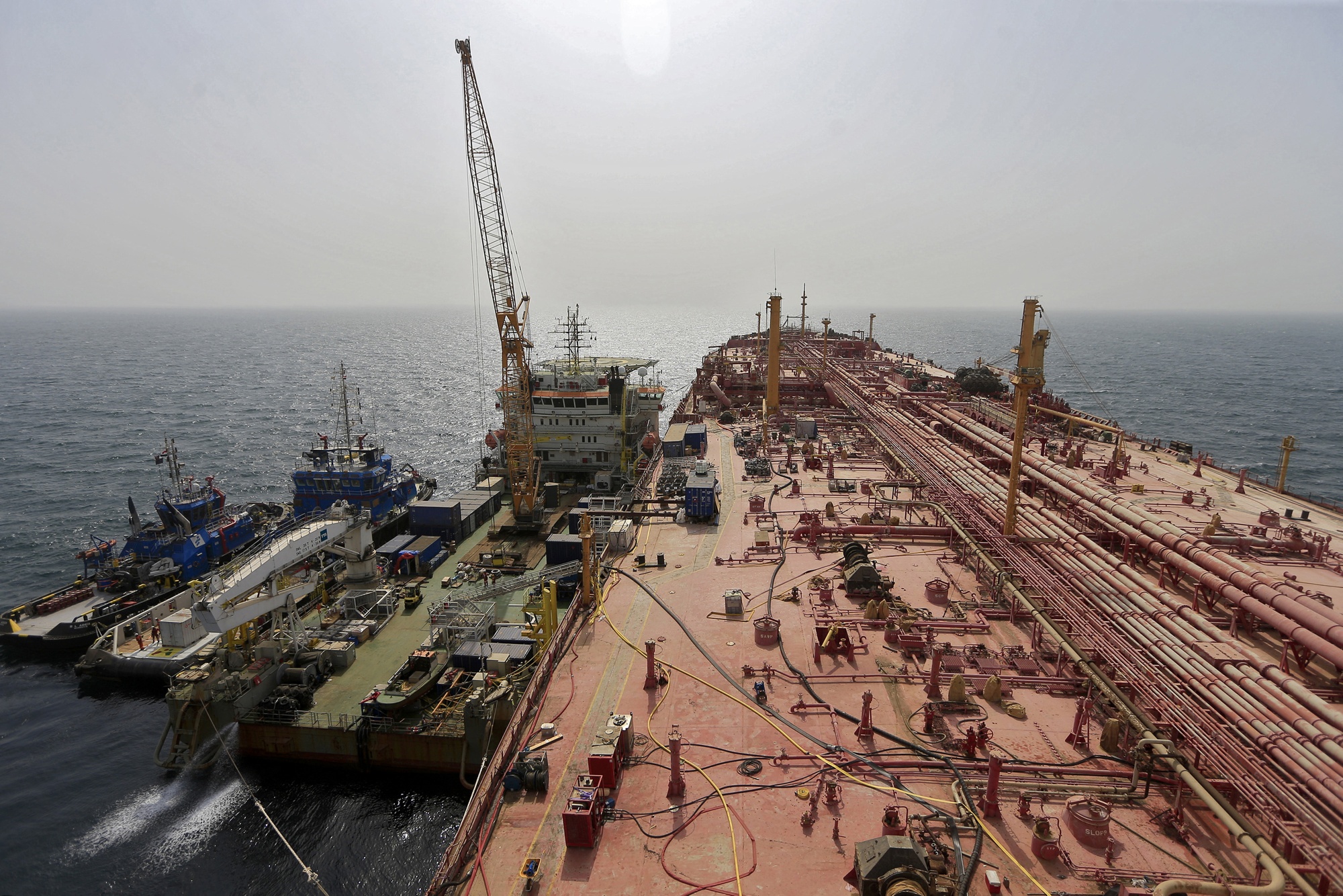 這艘老舊的船已經停泊多年,上面存放着一百多萬桶原油,但由於也門的內戰,一直無法接近。控制該地區的胡塞叛軍在去年9月同意支持聯合國的努力,將其貨物轉移到另一艘年輕的油輪上,後者將留在那裏。