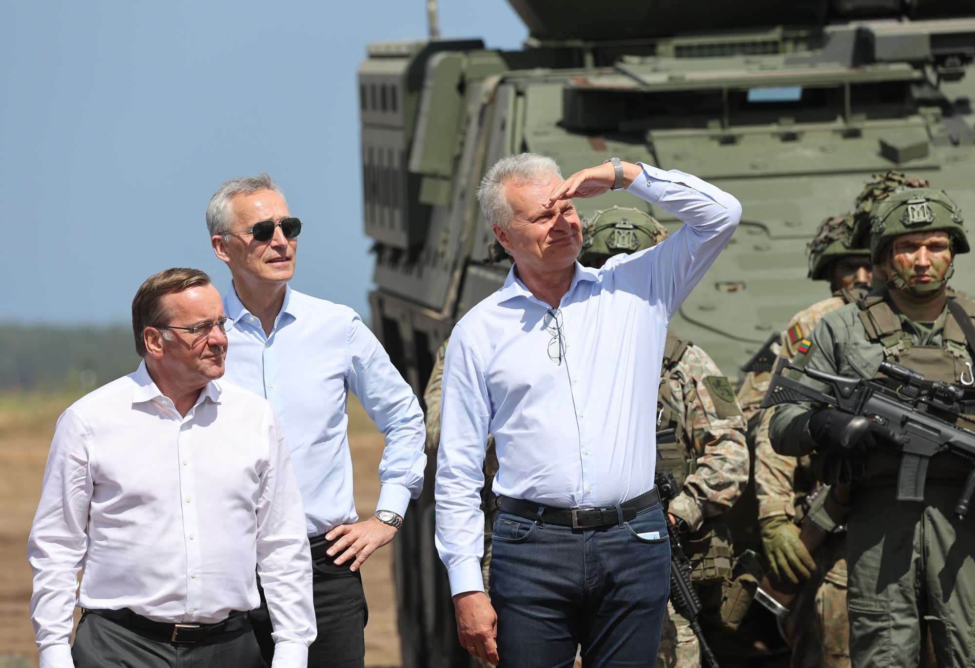 鮑里斯·皮斯托裏烏斯(左)、北約秘書長延斯·斯托爾滕貝格(中)、立陶宛總統吉塔納斯·諾紹達,於6月26日在立陶宛的帕布拉德。攝影師:安德烈·魯達科夫/彭博社NATO領導人去年夏天同意對聯盟的防禦姿態進行廣泛改革。這一承諾包括計劃將約30萬名部隊處於更高的戒備狀態,並承諾能夠將東部陣線上的八個多國戰鬥羣從大約1000名部隊擴大到旅的規模,規模可能達到5500名部隊。