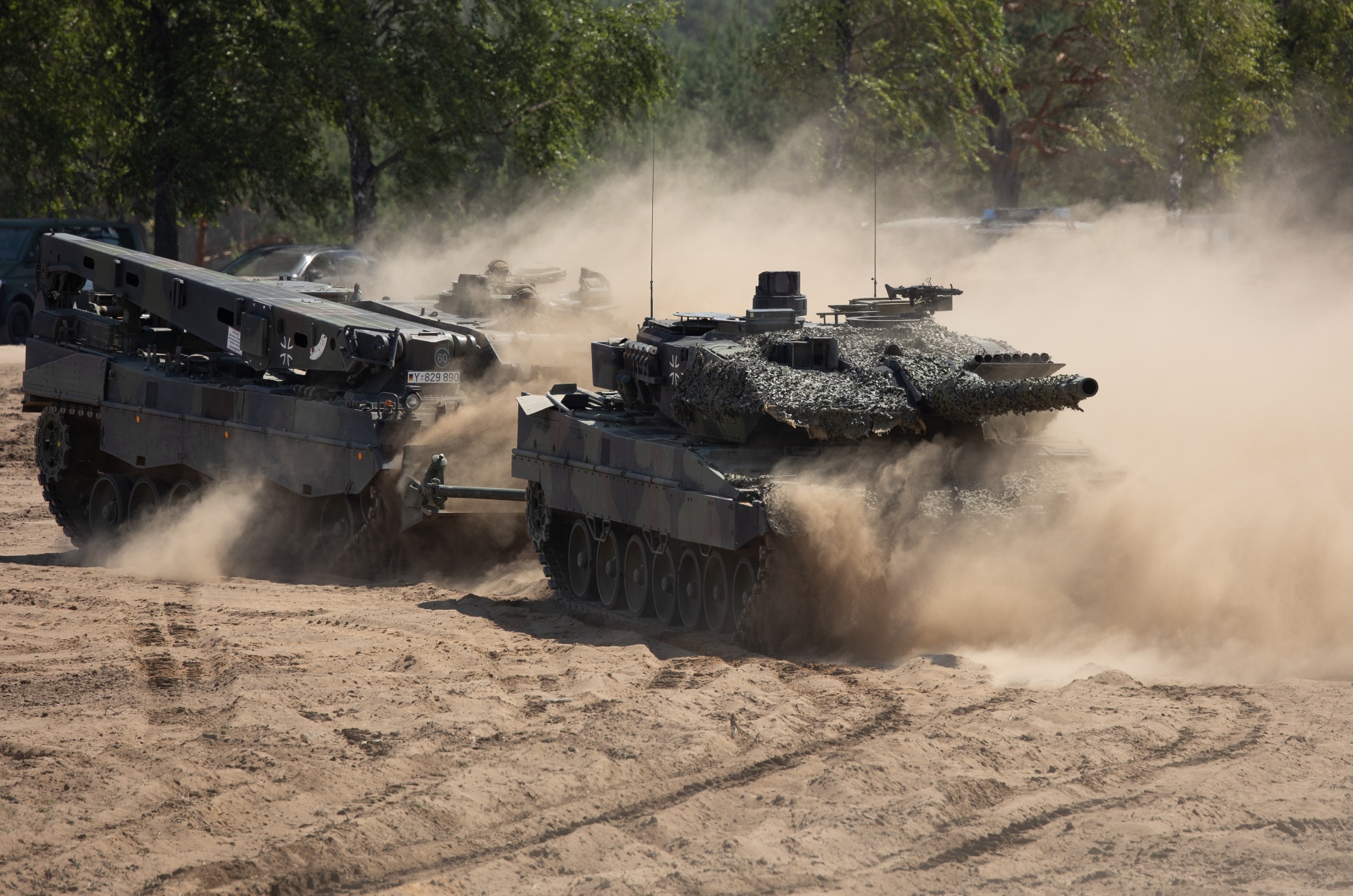 6月25日,在立陶宛帕布拉德舉行的北約演習Griffin Storm中的德國Leopard 2坦克。攝影師:安德烈·魯達科夫/彭博社“這將是一項相當大的努力,”皮斯托裏烏斯在與立陶宛同行阿爾維達斯·阿努紹斯卡斯一起向記者表示。“這就是為什麼我們同意逐步建立一個旅的原因。”