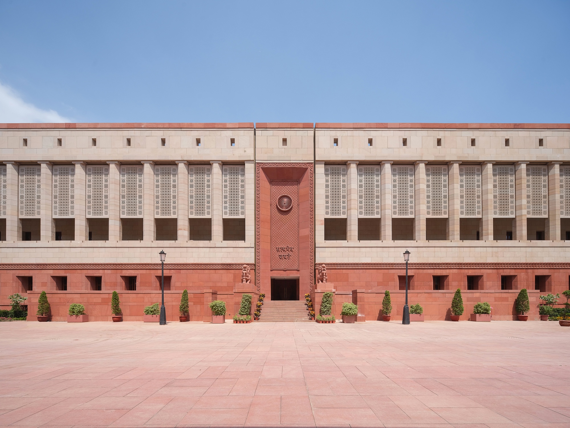 新的議會大廈融合了全國各地的材料。攝影師:Umang Shah/HCPDM