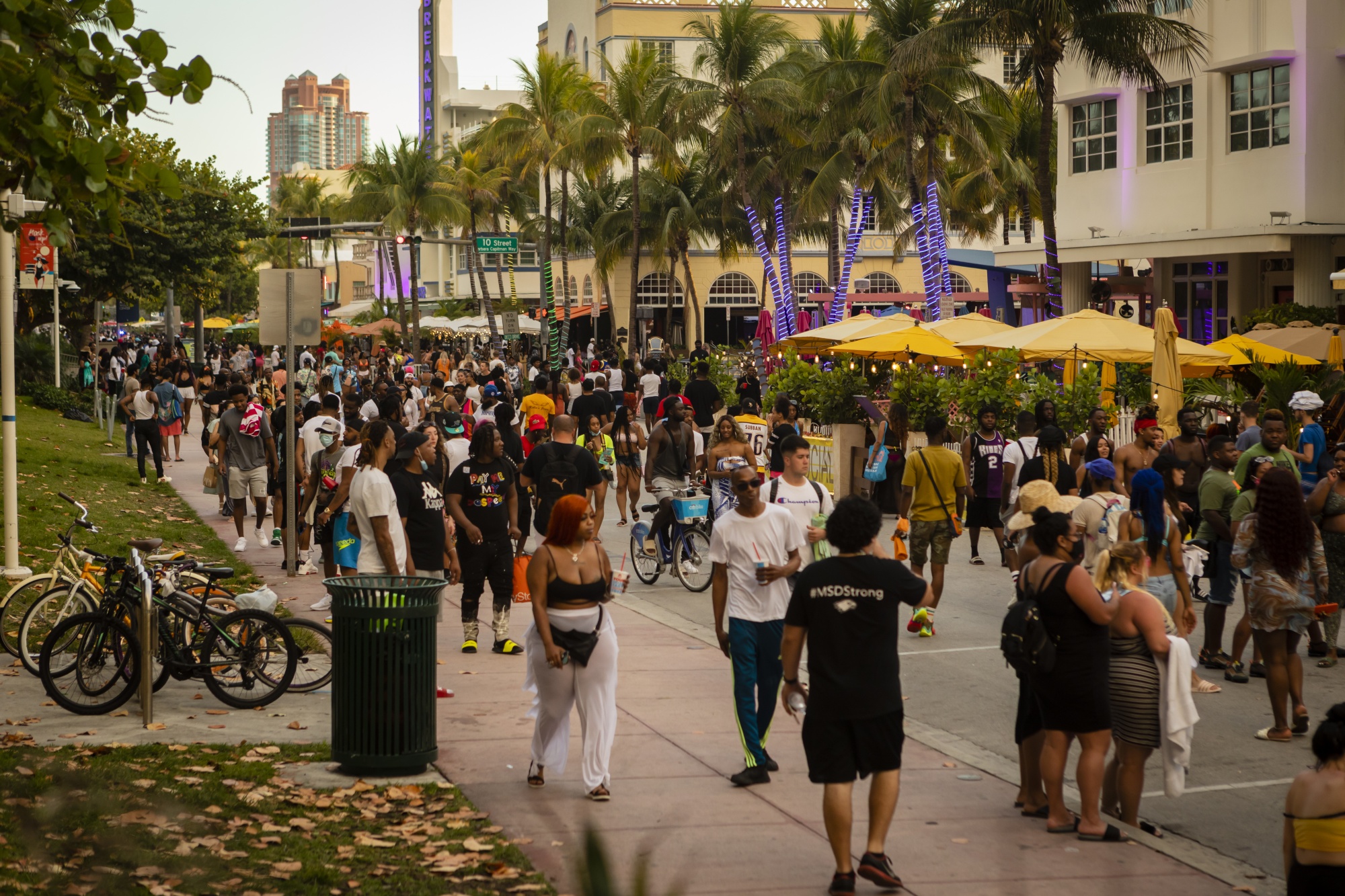 邁阿密南海灘的Ocean Drive上,人羣在2021年3月的春假期間行走。攝影師:Eva Marie Uzcategui/Bloomberg邁阿密海灘希望擺脱吵鬧的春假人羣,轉而支持芭蕾舞和植物園。