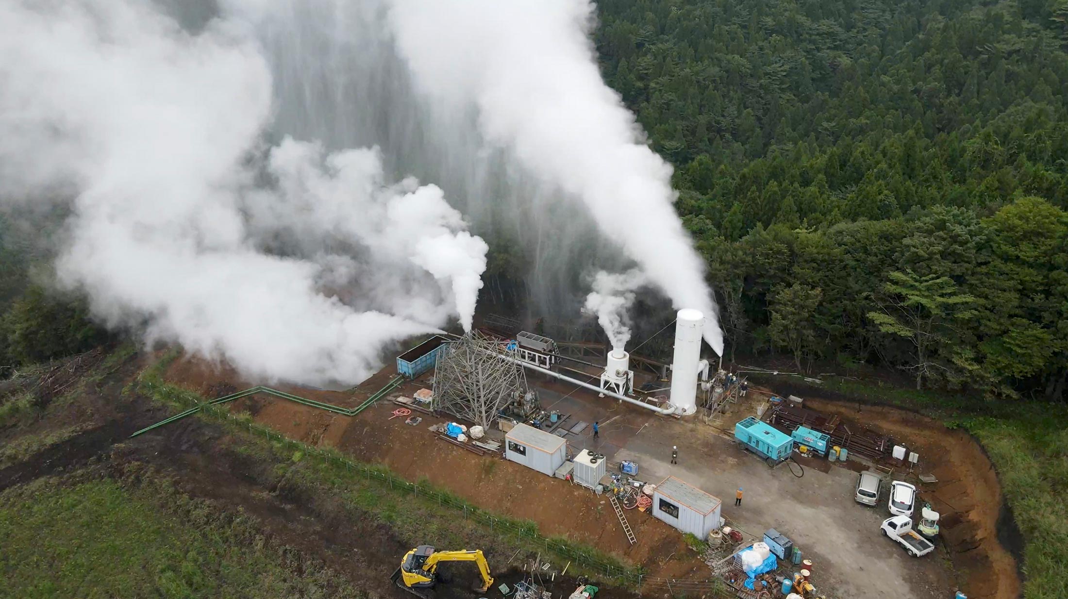 第一座商業地熱發電廠正在日本九州島南部的大國地熱田由萬千足能源公司建造。