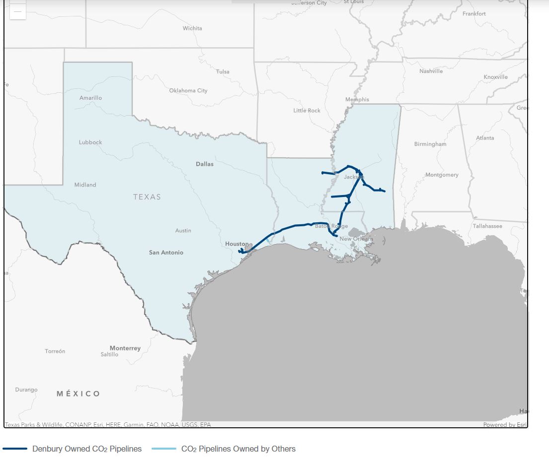 丹伯裏公司的主要資產是長達1,300英里(2,092公里)的管道,專門用於運輸二氧化碳,這是美國成功捕捉重污染設施(如煉油廠和化工廠)排放的關鍵基礎設施。