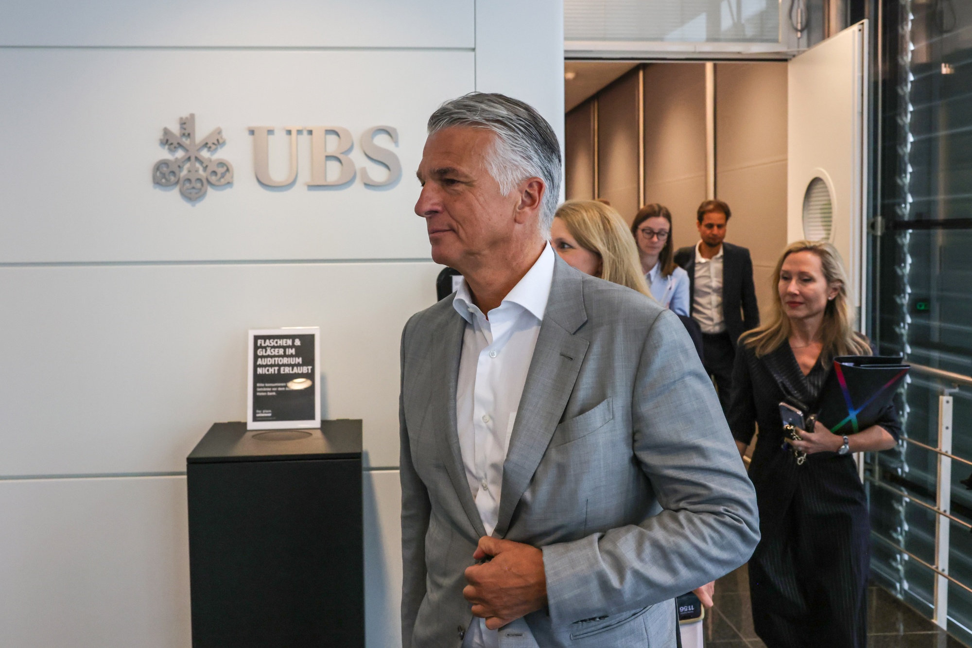 塞爾吉奧·埃爾莫蒂(Sergio Ermotti)在蘇黎世舉行的財報新聞發佈會上,於8月31日。