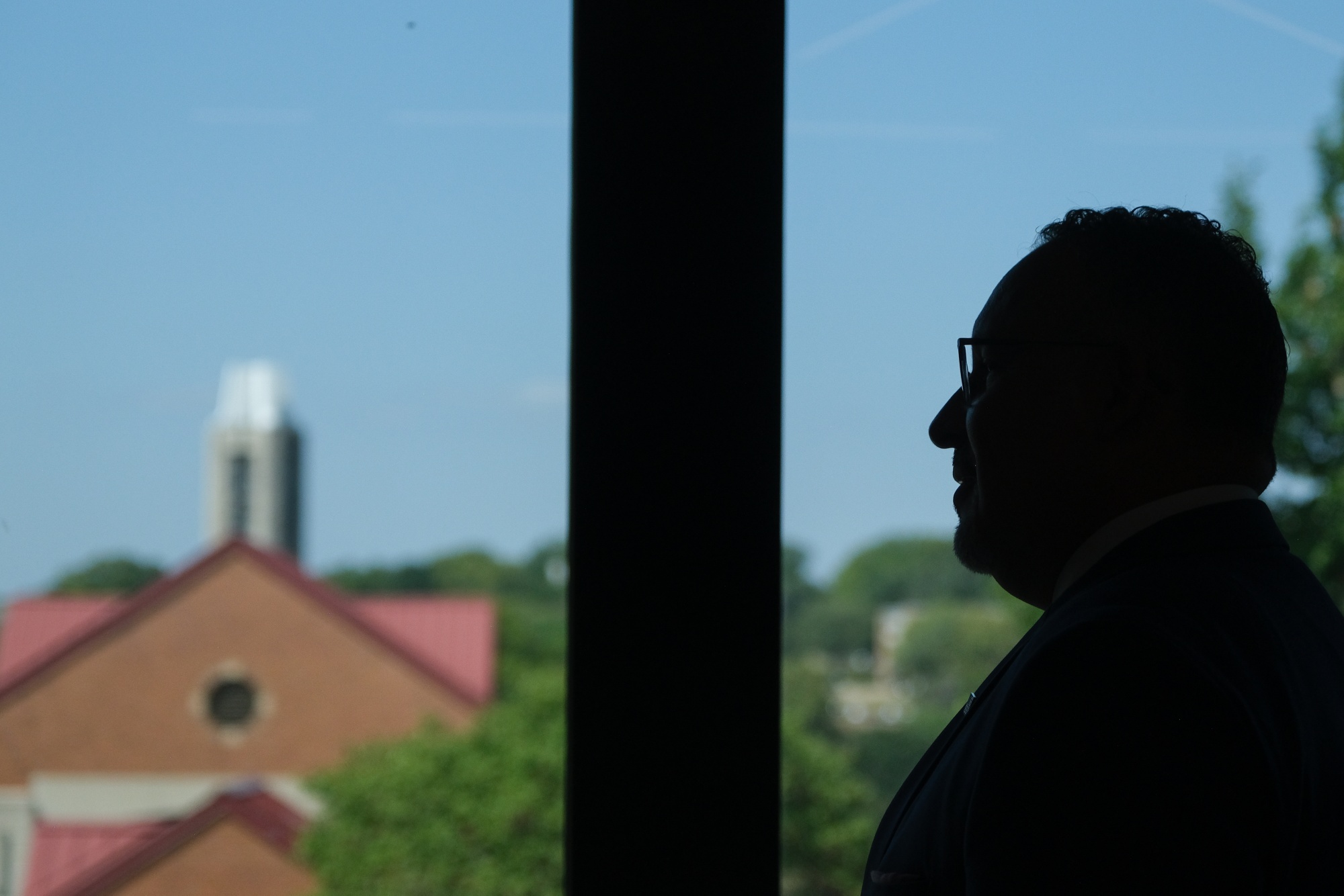 卡多納在上個月在堪薩斯州勞倫斯的堪薩斯大學巴士之旅啓動期間。攝影師:Arin Yoon/Bloomberg在高等教育方面,最讓卡多納工作困難的是最高法院。 從今年秋季開始,大學在很大程度上不應考慮申請者的種族或族裔,因為法院認為這種做法不公平。