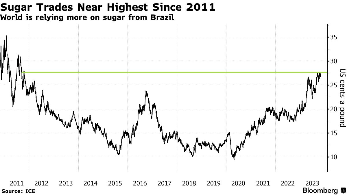 自9月初以來,情況變得更糟,當時Rangsit估計2023-24年的產量約為900萬噸,明年的出口量為600萬噸,而最初預測2023年為800萬噸。乾旱已經嚴重破壞了種植園,減少了可供壓榨的甘蔗數量。泰國是世界前三大出口國之一。