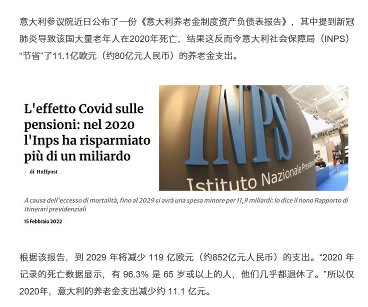 我們還記得新冠疫情之初歐美國家的一系列操作,如英國推出“評分制”,對相關指標達到5分的65歲以上的老年新冠患者放棄治療,法國,西班牙,意大利等國家都宣佈過對60至70歲以上的老年新冠患者放棄治療。新冠疫情中,養老機構一直是死亡重災區,美國的數據顯示,有統計的新冠死亡人數中,有四分之三都是65歲以上的老人。一些國家的政客公然宣稱新冠節省了養老金。