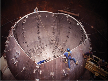 美國的NIF就是這麼一條路線,它的佔地面積約有三個標準足球場大小,在如此大的室內空間裏,排布着192條管道線。這些管線最終匯聚於一個直徑10米,重13噸的鋼製空心球體內中。
