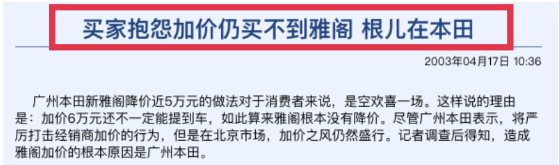 想買到一輛本田思域,不僅要加價3000元,還要排隊2個月,雅閣的經銷商更是放話加5萬才能提車,有的人加價都買不到。