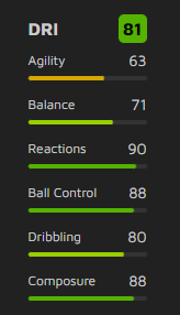 比如 FIFA22 裏,吉魯的身體能力( PHY )顯示是 77。