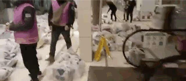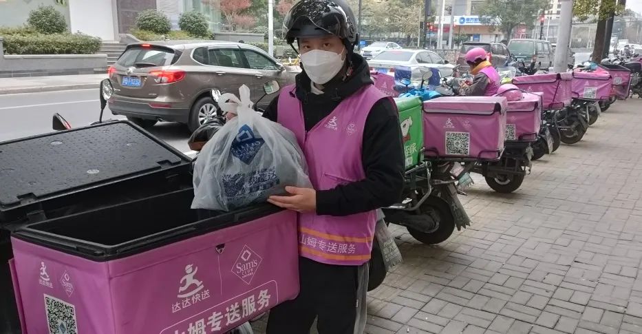 薛元帥是專門送山姆會員店訂單的達達快送騎士。門店在12月中旬開始出現爆單現象,訂單量達到了往常的2.5倍。在他發給記者的視頻中,取貨處堆滿了打包好的生鮮食品和日用品,騎手無處下腳。
