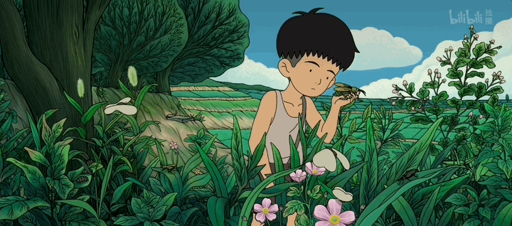 第一集《小妖怪的夏天》取材自《西遊記》,國畫風格的空鏡,典雅而富有韻味,山中的景色,令人忍不住感嘆一句**“千里江山,只此青綠”**,只是畫風已經足夠驚豔。
