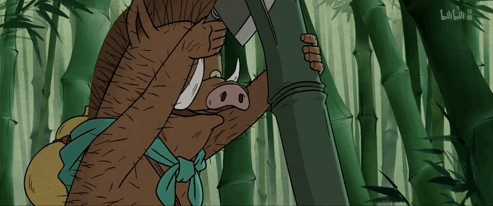 第三天,小豬妖和烏鴉精被派去砍柴,一晚上一千斤。