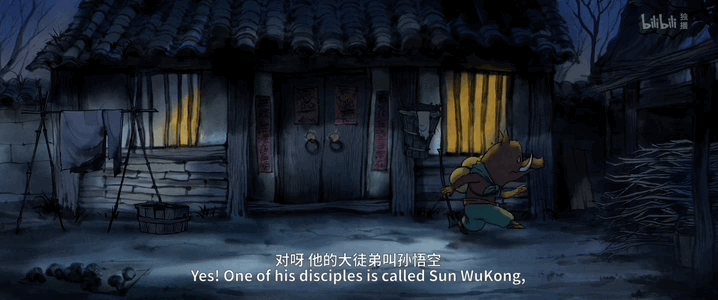 在偷柴火的時候,無意中聽見人類的對話,小豬妖知道了唐僧手下有個厲害的徒弟叫孫悟空。