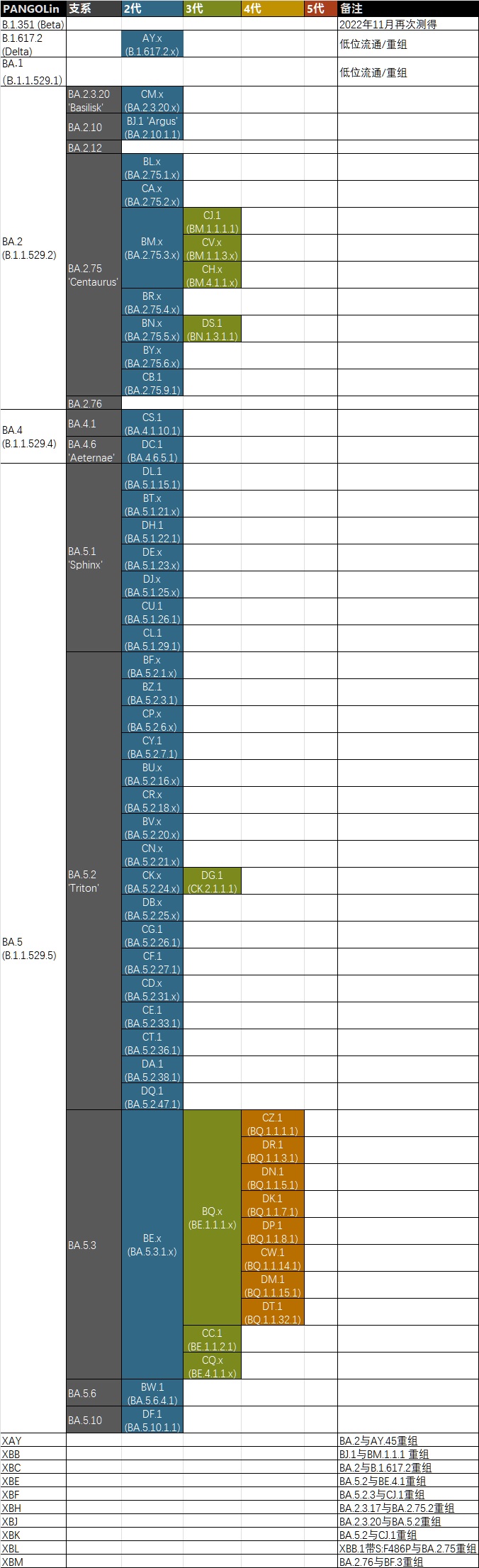 根據不同變種的“階位”可以大致估算出它們的相對增長優勢,階位越高的變種流行起來的可能也越大,這段時間內具有這樣特點的大概有BF、BJ、BN、BQ、BR、CH。