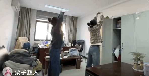 天選打工人在辦公室打八段錦 圖源:@栗子超人