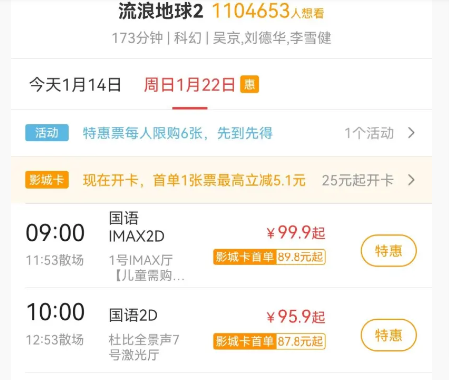 大家看《流浪地球2》的預售票價,尤其的巨幕廳是不是普遍都比較貴?