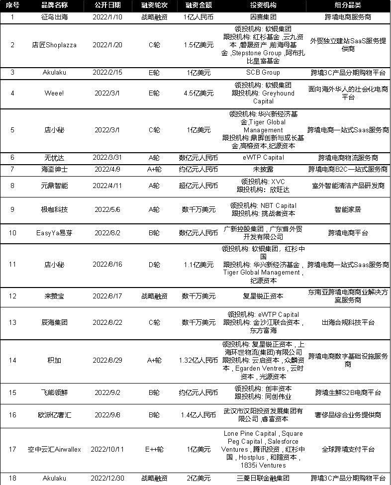 據藍鯊消費不完全統計,2022年,跨境出海領域投融資事件83起。獲得投融資的出海項目中,72個是服務商和電商平台,7個為智能家居產品出海。