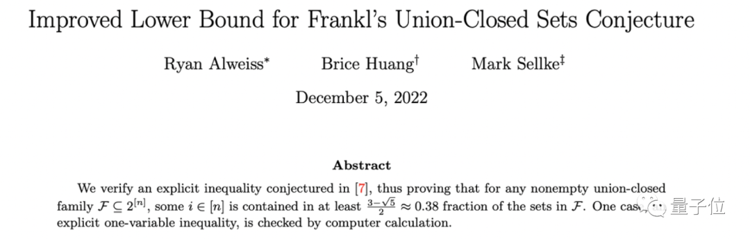 在後續研究中,對**“並封閉集合猜想”**的概率值證明,被推進到了38%。