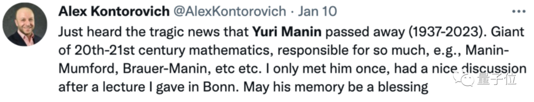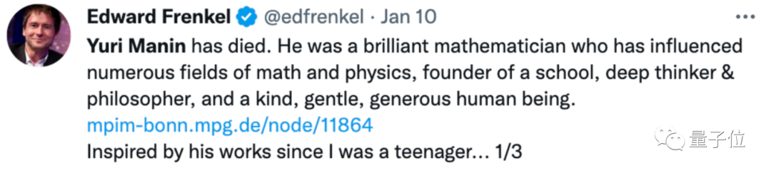 85歲的俄羅斯數學家尤里·曼寧(Yuri Manin)的人生故事,永遠終止在了2023年1月7日這天。