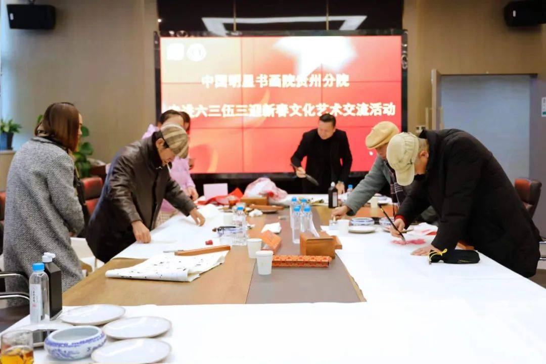 小年已至,年味漸濃。為弘揚中國傳統文化,增添春節喜慶色彩,將平安、祥和的新年氣氛傳遞給每位“六三伍三”家人,2023年1月15日,六三伍三集團特邀中國明星書畫院貴州分院的書畫名家,開展迎新春文化藝術交流活動。